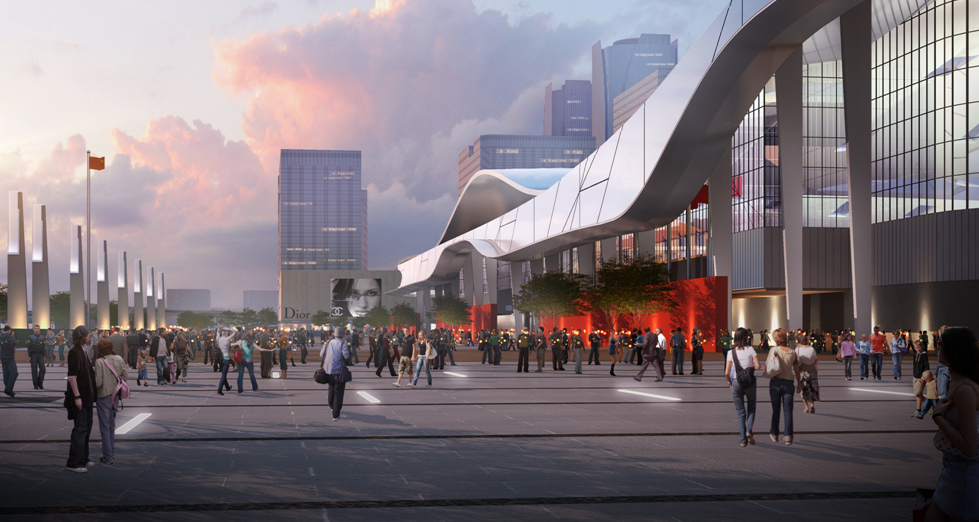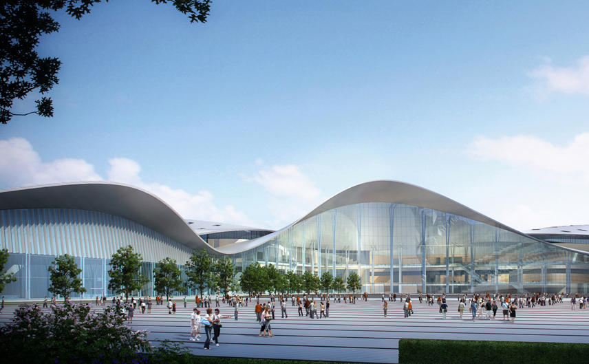 項目由新城東南角靠近中央公園和中央商務(wù)區(qū)的南北兩大地塊組成,總用地面積約86公頃。本次設(shè)計為南地塊,項目為國際展覽展示中心,用地約60公頃。